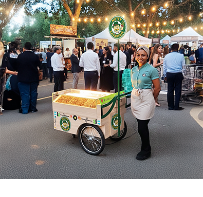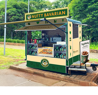 Um novo formato de franquia que permite ao franqueado levar a estrutura Carrinho da Nutty Bavarian para qualquer lugar e atuar em diversos tipos de eventos, como festas, festivais, aniversários, casamentos e muito mais!